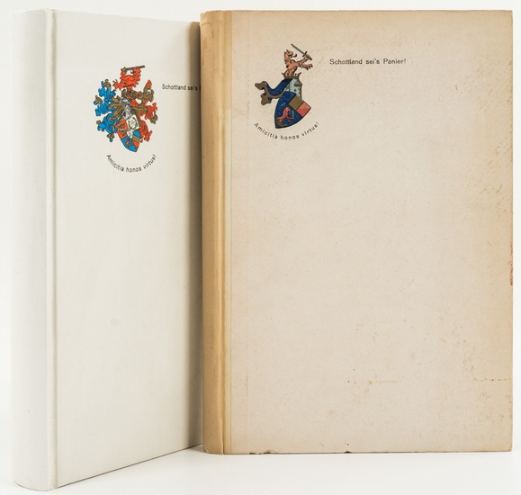 Geschichte der Landsmannschaft Schottland im CC zu Tübingen. - [2 Bände]. - Stuttgart:, Buchdruckerei der Paulinenpflege; Förderverein, 1924-2000. 2 Bände: vii, 377 (1); 395 Seiten, OHLnbd. (1), OPpbd. (1), 23,5 x 16 cm. 2 Bände. - Band 1: 1849-1924. - Band 2: 1924-1999. - Geschichte der schlagenden Verbindung "Landsmannschaft Schottland". - Der Nebentitel lautet: "Geschichte der Landsmannschaft Schottland zu Tübingen". - Etwas berieben und bestoßen; der Einband des ersten Bandes dezent fleckig; gute Exemplare.