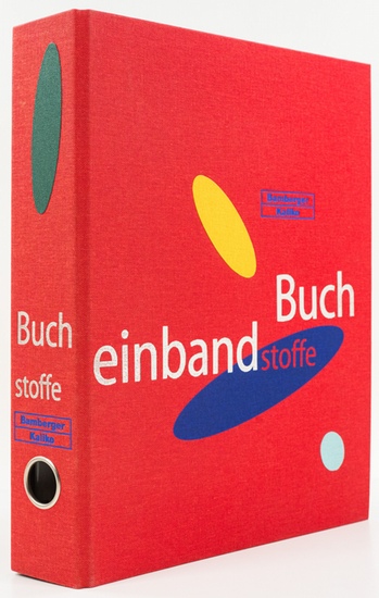 Bamberger Kaliko: Bucheinbandstoffe. - [Musterbuch]. - Bamberg:, Bamberger Kaliko, (1998). 30 Doppelblätter auf Karton (davon eins mehrfach gefaltet) mit Hunderten von eingearbeiteten Mustern, 36 separate Muster im Anhang, OLn.-Ringbuchordner, 29,5 x 19 cm. Üppig ausgestattetes Musterbuch mit Einbandbezugstoffen: Leinen, leinenartige Stoffe aus unterschiedlichen Materialien, Kunstleder, etc. - Minimal berieben; winziges Signaturschildchen auf dem vorderen Spiegel; sonst und insgesamt gutes Exemplar.