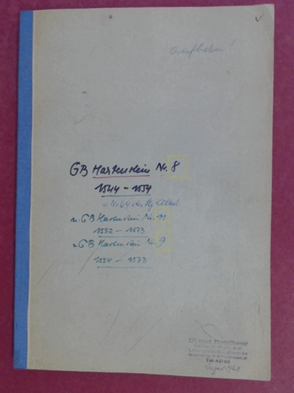 Regesten zum Gerichtsbuch Hartenstein No. 8, 1544 - 1554. / Regesten zum Gerichtsbuch Hartenstein No. 9, 1554 - 1573. / Regesten zum Gerichtsbuch Hartenstein No. 11, 1552 - 1573 (Schreibmaschinendurchschlag). Staatsarchiv Dresden. Zusammengestellt von Ernst Költzsch. Wilkau-Hasslau, 1969. 06, 28; 06, 35; 012, 52 Seiten. Großformat, Private Broschur. !!ACHTUNG: Dies ist nicht das Original, sondern ein Schreibmaschinendurchschlag!! Gutes Exemplar mit nur leichten Gebrauchsspuren. Exemplar mit wenigen Bleistiftergänzungen. Buch aus einem Nichtraucherhaushalt.