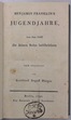 Jugendjahre, von ihm selbst für seinen Sohn beschrieben und übersetzt von Gottfried August Bürger. Berlin, H. A. Rottmann, 1792. 214 S. Moderner Pappband. Erste Ausgabe der ersten deutschen Übersetzung des ersten u. berühmtesten Teils der nicht abgeschlossenen "Lebenserinnerungen" des amerikanischen Staatsmannes u. Erfinders Benjamin Franklin. Diese sind "eines der aufschlußreichsten Dokumente über Leben und Gesinnung im kolonialen Amerika und in der jungen Republik, ein Zeugnis der Vielseitigkeit, des Gemeinsinns, der praktischen Lebensweisheit und des originellen Geistes ihres Verfassers" (NKLL). Die "Jugendjahre" sind 1771 in England entstanden, wo sich Franklin zeitweilig als Vertreter der amerikanischen Kolonien aufhielt, u. gelten als das erste "klassische" Werk der amerikanischen Literatur. In Form eines "autobiographischen Briefes" schildert der Autor Anekdoten u. Episoden der Knabenjahre u. der Zeit des Aufstiegs zum angesehenen Bürger Philadelphias. Franklin hatte 1766 Deutschland bereist u. sich bei seinem längeren Aufenthalt in Göttingen auch mit seinem Übersetzer G. A. Bürger angefreundet. Mit dem zeitgenössischen Besitzstempel von C. H. F. v. Houwald auf Titel u. Schlußblatt. - Goed. IV/1, 1013, 62. - Gering gebräunt, S. 112-114 mit großem bräunlichen Tintenfleck.
