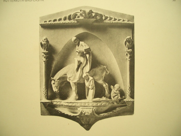 Das letzte Werk mit Darstellungen von Arbeiten des früh verstorbenen Dresdner Bildhauers E. Hottenroth (1872-1908). Hottenroth war auf Anregung der Dresdner Architekten Schilling u. Gräbner von Berlin nach Dresden übersiedelt u. schuf hier Bauplastik für die Kreuzkirche, die Kunstgewerbeschule, das neue Ständehaus etc. "In allen diesen Werken offenbart Hottenroth ein staunenswertes Talent für angewandte Kunst, ein immer reifer werdendes Verständnis für den Zusammenhang von Architektur und Plastik ... Das wird man aus den hier abgebildeten Ornamenten und selbständigen, plastischen Werken leicht erkennen." (Vorwort). Die Tafeln zeigen meist mehrere Details meist von Dresdner Bauten.