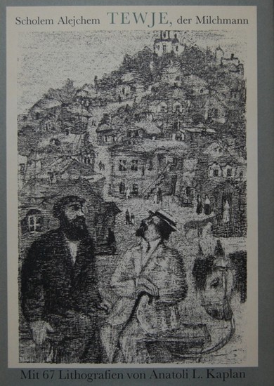Leipzig, Reclam Leipzig, 1984. Sehr guter Zustand. Aus dem Jiddischen von Alexander Eliasberg und Max Reich. Mit 67 Lithographien von Anatoli Lwowitsch Kaplan. Hg. von Hans Marquardt. Mit einer Nachbemerkung von Rudolf Mayer zu Kaplans Bildern. Leinen mit Schutzumschlag, Fadenheftung, 188 Seiten. 30 x 21 cm. Schutzumschlag minimal bestoßen, insgesamt sehr guter Zustand. 1. Aufl.