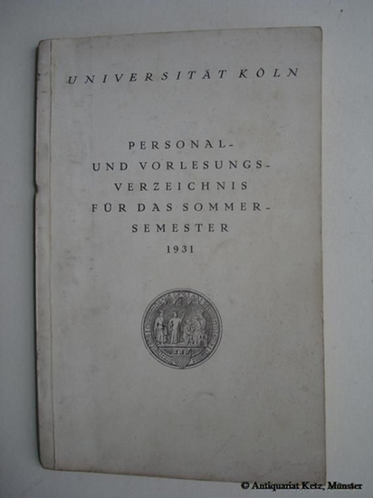 ** Mit Adressenverzeichnis der Professoren und Dozenten. * Letzte Seite mit handschriftlichen Ergänzungen (Bleistift). Umschlag fleckig, sonst ordentlich. (SW: Studentica - Universität Köln - Vorlesungsverzeichnis).