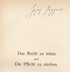Das Recht zu leben und die Pflicht zu sterben. Socialphilosophische Betrachtungen.Dresden, Reissner, 1903. Or.-Ln.XII, 245 S.+ 3 S.Anz.3., veränd.Aufl., mit neuem Vorwort d.Verf.Vortitel vom Autor signiert.Band etw.fleckig, Innendeckel m.Exlibris. |
