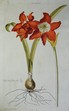 Kolorierter Kupferstich von Ehret. Lilio-Narcissus II. West-Indische rothe Lilie. Nürnberg, Seligmann, 1750-1786. circa 45,4 x 28 cm., 1 Blatt. verso weiß Großes botanisches Blatt mit Legende; aus Christoph Jakob Trew: "Hortus nitidissimus omnem per annum superbiens floribus". Zu sehen ist eine detaillierte Darstellung der Belladonnalilie (Amaryllis belladonna), einer hochgiftigen Art aus der Familie der Amaryllisgewächse, die sich als Zier- und Topfpflanze großer Beliebtheit erfreut. |