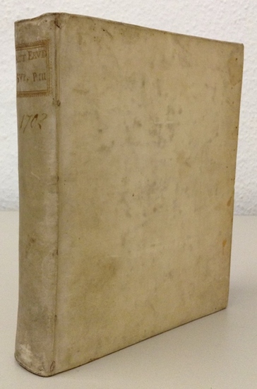 Actorum eruditorum ... supplementa. Tomus III. Leipzig, Gross Erben u.a. 1702. 4to. 1 Bl., 565 (recte 574) S. Mit 8 teils gefalteten Kupfertafeln. Pergament d. Zeit (angestaubt, Innengelenke gebrochen). Mit Rezensionen u. Referaten über den Briefwechsel des berühmten Polyhistors C. S. Schurtzfleisch, außerdem A. Seller. The antiquities of Palmyra (mit einer prachtvollen, von 2 Platten gedruckten Panorama-Ansicht der Ruinen, ca. 15 : 80 cm); über I. de Cruce. Historica antica e moderna, sacra e profana, della citta di Trieste; J. Woodward. An essay toward a natural history of the earth; M. Hale. Magnetismus magnus or metaphysical and divine contemplations on the magnet; N. Vallerius (Waller). Tentamina physico-chymica circa aquas thermales Aquisgranensis (über die Thermalquellen in Aachen); M. Lister. Exercitationes medicinales de quibusdam morbis chronicis; de la Hire. Tractatus de mechanica u.a. - Gebräunt u. stockfleckig, Titel etwas feuchtigkeitsfleckig.
