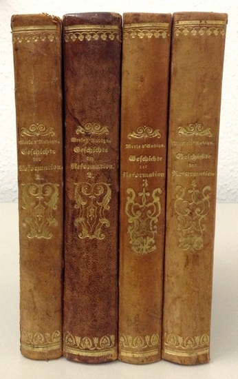 Geschichte der Reformation in Europa zu den Zeiten Calvin's. 4 Bände. Elberfeld, Friderichs, 1863-66. Halbleder d. Zeit mit Rückenvergoldung (etwas berieben, Ecken bestoßen). Erste rechtmäßige deutsche Ausgabe. Der Schweizer Historiker hörte in Berlin die Vorlesungen Meanders u. verbrachte 5 Jahre als Pastor der französischen Kirche in Hamburg, bevor er endgültig nach Genf zurückkehrte. - Fromm IV, 17519. - Etwas gebräunt u. teilw. stockfleckig.