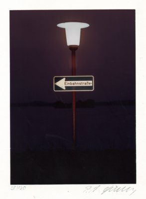 iRR-Realismen. [Bielefeld], Schindler, 1981. Fol. OLwd.-Kassette (Gebrauchsspuren). 1 Bl. und 10 num. u. sign. Orig.-Farbfotos unter Passepartout. Erste Ausgabe. - Nr. 58 von 120 Exemplaren. - Der Werbefotograf ist Ehrenmitglied im Centralverband Deutscher Berufsfotografen. Die Fotos auf Agfachrome CU 312 im Format 24 × 17,5 cm unter Passepartout montiert und auf dem Passepartout signiert und numeriert. Die Aufnahmen unwirklicher Orte entstanden 1981 in Malente, Eutin und Preetz. - Bis auf die Kassette tadellos erhalten. - Nicht bei Heidtmann. Kein Exemplar auf einer deutschen Nachkriegsauktion.