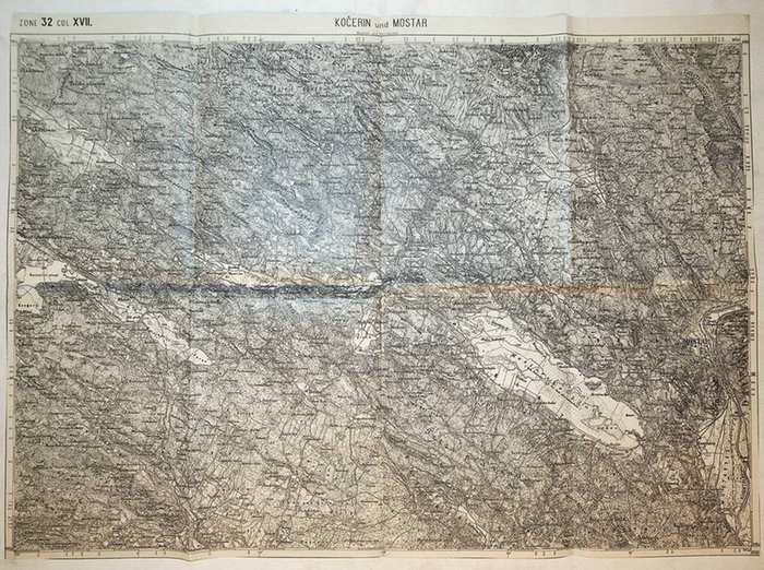 Kocerin und Mostar -Land: BOSNIEN-HERCEGOVINA/KROATIEN-SLAVONIEN (= Specialkarte der ?sterreichisch-Ungarischen Monarchie - 1:75 000 Zone 32, Colonne XVII [Band: 6659]) Wien, Milit?rgeographisches Institut, 1886. Formatangabe ca 50 x 37 cm, gefaltet zu 8 Segmenten, Ausgabe: einf?rbig ; Zustand: gut. Spezialkarte ?sterreich-Ungarn <1:75000>.