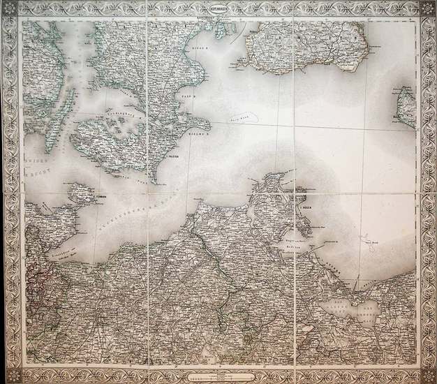 Kopenhagen (=General-Karte von Central-Europa Ma?stab: 1:576 000 4. Blatt) entworfen, gezeichnet und herausgegeben von Josef von Scheda [Wien], 1871. original Kupferstich, original engraving, ca. 44 x 50 cm in 6 Segementen auf Leinen gezogen.