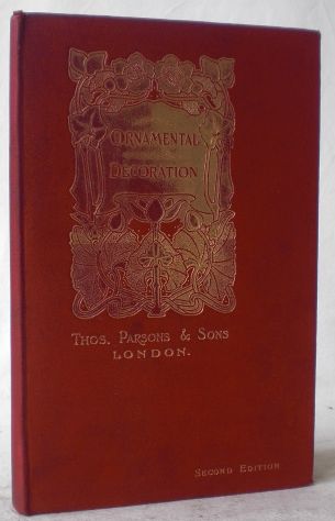 A Few Suggestions for Ornamental Decoration in Painters' and Decorators' Work. Compiled by F. Scott Mitchell. Published by Thos. Parsons & Sons, Manufacturers of Varnishes, Japans, Enamels and Fine Colours, 8, Endell Street, Long Acre, London, W. C.. London: Thos. Parsons & Sons. 1912. 3 Bl., 158 S. (Tafeln mitpaginiert). 8°. Mit zahlr. teils farbigen, teils chromolithographischen Abbildungen auf Tafeln und im (kurzen) Textteil, darunter 4 Tafeln mit montierten Farbmustern. Einband etwas berieben und bestoßen; Kopfschnitt mit kleinem Fleck durch die Leinwandfarbe - zu Beginn leicht in die Blattränder eingedrungen; Vorsätze gering stockfleckig; 2 der Farbmuster-Tafeln etwas welllig; 2 Stempel auf dem Vordervorsatz und einer dieser Stempel "Thos. Parsons & Sons (Continental Department) 16, Avenue Ducpetiaux St-Gilles Bruxelles" auf der unbedruckten Rückseite von 5 Tafeln.