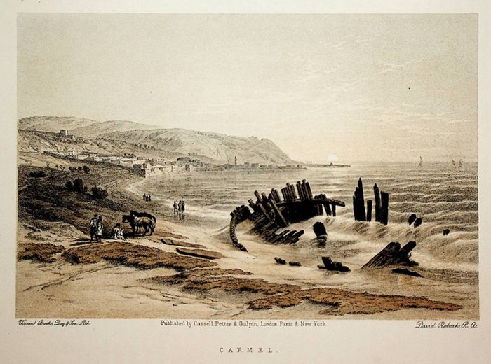 MOUNT CARMEL Title: Carmel. antique print. London, Paris & New York, Cassell Petter & Gaplin, n. d. ca. 1870-1875. original Lithograph Vincent Brooks, Day & Son after David ROBERTS (1796-1864), image format ca. 15 x 23 cm. Antique Print, antike Grafik.