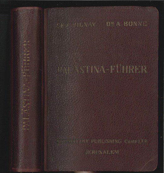 Steinmatzky's Palästina-Führer. Jerusalem, Steinmatzky 1935. 8°. 8 Bll., CLXXVI, 451 S. mit 5 mehrf. gefalt. Karten in Leinenlasche am hint. Spiegel u. zahlr. Ill. im Text. Oln. Rü., restaur. Kanten leicht berieben, innen gut erhalten. Erste Ausgabe des umfangreichen Palästina-Reisführers von Zev Vilnay (1900-1988) und Alfred Bonne (1889-1959). Vilnay verfasste zudem auch einen "Guide to Israel", der zahlreiche Auflagen erfuhr.
