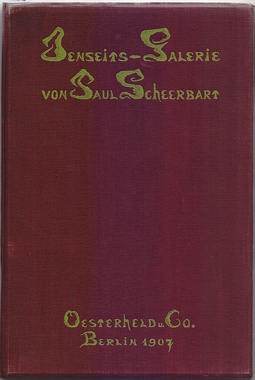 Jenseits-Galerie. Berlin, Oesterheld, 1907. 4to. 10 Orig.-Lithographien von Paul Scheerbart und 4 unpaginierte Seiten Text zusammen in dunkelroter OLwd.-Mappe mit grüner Titelprägung. Lubasch/Meyer S. 10. - Erste Ausgabe. - Von Scheerbart mit roter Tinte signiert und numeriert, in kleiner Auflage erschienen. Die phantastischen Zeichnungen wurden auf deutschem Japan gedruckt. - Deckel etw. berieben, m. einzelnen Fleckchen. Nur das Titelbl. leicht stockfleckig, sonst sauber u. wohlerhalten.