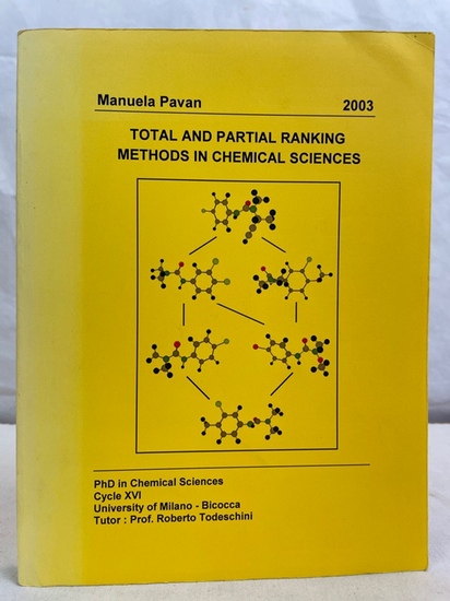 Total and Partial Ranking Methods in Chemical Sciences. Manuela Pavan ; tutor: Roberto Todeschini ; University of Milano-Bicocca. Milano, Universita' degli studi, 2003. VI, 277 S., mit Illustrationen, Gr.-8° OKarton. Einband vorwiegend sauber, mit handgeschriebenen Rückentitel und Inventarnummer, an Ecken gering bestoßen, Seiten sauber, außer Besitzereintrag auf Titelblatt ohne Einträge, 0.