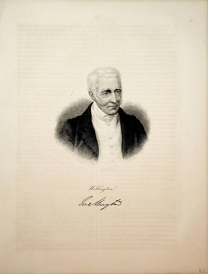 WELLINGTON, Arthur Wellesley, 1st Duke of Wellington (1769-1852), British commander at Waterloo and Prime Minister c. 1840. Portrait / original Stahlstich original steelengraving by von Weger & Singer Bild ca.: 10,5 x 10 cm. antike Druckgraphik / antique print.