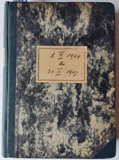 (Geburtenregister der Allgemeinen Städtischen Krankenanstalten Düsseldorf vom 1. 4. 1944 - 31. 3. 1947. Ca. 583 S. mit je ca. 12 handschriftlichen Eintragungen) Düsseldorf: Allgemeine Städtische Krankenanstalten [jetzt Universitätsklinik]. 1944 (bis 1947). ca. 583 S. Insgesamt gut erhaltenes einmaliges Dokument.