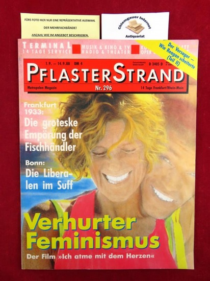 Pflasterstrand - Metropolen Magazin. Umfangreiches KONVOLUT /REIHE /SAMMLUNG. 1986: Nummer 230, 231,233,240,241,242,244,247. 1987: 253,254,258,259,260,261,263,264,266,267,268,269,270,272,273,274,275,276. 1988: 277/78, 281,282, 283,284, 287,288, 292, 293, 294,295,296,298,299. 1989: 300,301, 304. 43 Hefte, dabei eine Doppelnummer. Frankfurt, PflasterStrand, 1986. Mit zahlreichen dokumentarischen Abbildungen und Illustrationen Originalbroschur. 28 cm. Nur die Umschläge teils mit leichten Gebrauchsspuren. Sonst aber schönes Exemplar der umfangreichen REIHE. SELTEN . - Legendäres, von Daniel Cohn-Bendit herausgegebenes Kampfblatt der linken Frankfurter Anarchoszene. - ( Wir bieten zahlreiche Titel aus diesem Sachgebiet auf unserer HP an - We offer a lot of books in this field ).