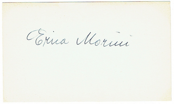 Eigenh. Albumblatt mit Unterschrift. ohne Ort und Datum. Quer-8vo. 1 p. Eigenhändiges Albumblatt mit Unterschrift. Erika Morini spielte als Fünfjährige vor Kaiser Franz Joseph. Mit acht Jahren begann ihre Ausbildung an der Wiener Musikakademie unter Otakar ¦ev ík. Daneben belegte Erika Morini Stunden bei Jakob Grün sowie dessen Schülerin Rosa Hochmann-Rosenfeld, Arnold Rosé und Adolf Busch. Schnell stieg Morini zur führenden Geigerin der jungen Generation auf. 1918 spielte sie mit dem Leipziger Gewandhausorchester unter Nikisch ein Mozart-Konzert, ein schmaler Teenager mit einer Dreiviertel-Geige. "Ich bin das einzige Kind gewesen", sagte sie später, "das mit dem Gewandhausorchester auftreten durfte." Erste größere öffentliche Auftritte führten Erika Morini nach Berlin. 1921 tourte sie durch die USA. 1935 emigrierte die Jüdin mit ihrem Mann in die USA. Dort konnte sie ihre Karriere als Solistin fortsetzen und erteilte zudem Unterricht. Erika Morini war seit 1924 in Besitz einer 1727 gebauten Stradivari. In ihrem Testament hatte die Künstlerin die Versteigerung dieses wertvollen Instrumentes zugunsten gemeinnütziger Institutionen verfügt. Dieses wurde jedoch wenige Wochen vor Erika Morinis Tod aus ihrer Wohnung in Manhattan gestohlen. Aus der Sammlung des Wiener Anwalts Max Bettelheim (1912-1971). Von dessen Nachfahren übernommen.