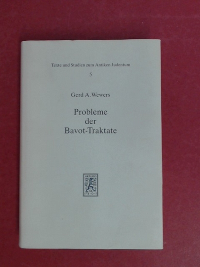 Probleme der Bavot-Traktate. Ein redaktionskritischer und theologischer Beitrag zum Talmund Yerushalmi. Band 5 aus der Reihe "Texte und Studien zum Antiken Judentum." Tübingen: Mohr Siebeck, 1984. VIII, 360 Seiten Original-Leinenband mit Schutzumschlag. Gutes Exemplar mit nur leichten Gebrauchsspuren. Textsauber und aus einem Nichtraucherhaushalt. Mit Namenssignatur auf dem Vorsatzblatt.
