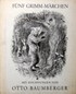 Fünf Grimm-Märchen. Weiningen-Zürich, Selbstverlag J. und R. C. Baumberger, 1968. Mit Zeichnungen von Otto Baumberger. Pappband mit Pergamin-Rücken, Fadenheftung, [22] Seiten, 26,2 x 21,2 cm. Einband mit Gebrauchsspuren, Besitzervermerk auf fliegendem Vorsatzpapier, gelegentliche Gebrauchsspuren am Seitenrand. 1. Aufl. |