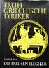 Frühgriechische Lyriker. Erster Teil. Die frühen Elegiker. Berlin, Akademie-Verlag, 1971. Deutsch von Zoltan Franyo. Griechischer Text bearbeitet von Bruno Snell. Erläuterungen besorgt von Herwig Maehler. Leinen mit Schutzumschlag, Fadenheftung, 110 Seiten. Umschlag mit kleinen Gebrauchsspuren, und einem ca. 3cm-Randeinriss, sonst sehr gut erhalten. 1. Aufl. |