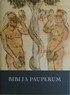 Biblia Pauperum. [Armenbibel.] Berlin, Union Verlag, 1967. Faksimileausgabe des vierzigblättrigen Armenbibel-Blockbuches in der Bibliothek der Erzdiözese Esztergom. Erläuternder Text von Elisabeht Soltesz. Aus dem Ungarischen von Geza Engl. Leinen mit Schutzumschlag, 40 Seiten Blockbindung, mit Farbtafeln, XXXI Seiten Erläuterung, 32,5 x 24,5 cm. Schutzumschlag am Rücken leicht vergilbt sowie mit leichten Randläsuren, insgesamt guter bis sehr guter Zustand. 1. Aufl. |