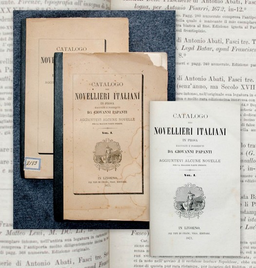 Catalogo dei Novellieri Italiani in prosa. Raccolti e posseduti da Giovanni Papanti, aggiuntevi alcune novelle per la maggior parte inedite. 2 volumes.