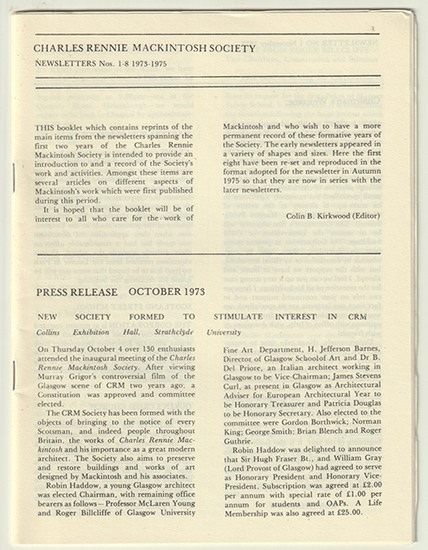 Glasgow, Charles Rennie Mackintosh Society 1973-1979. Newsletters 1-21. gr.-8°. Ogeh.